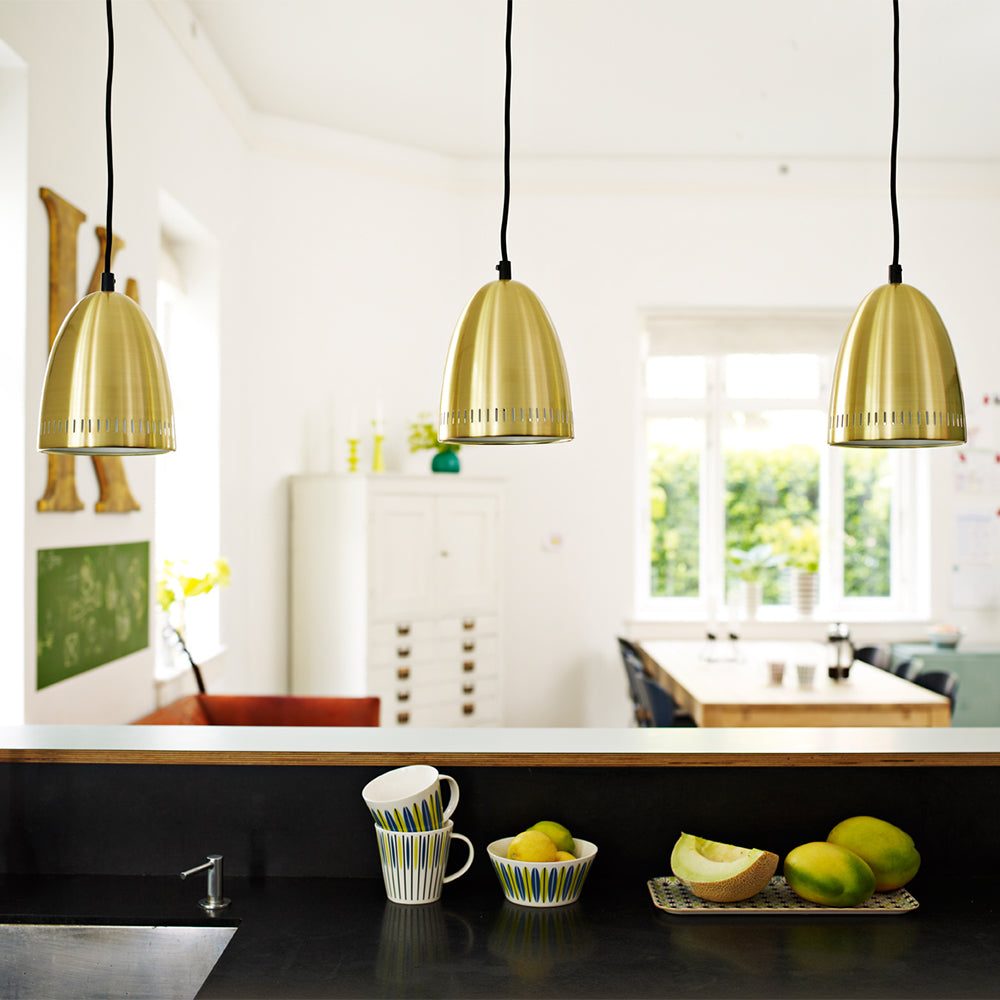 Pendel i matlakeret metal med udstansede huller. Den leveres med baldakin i matchende farve.